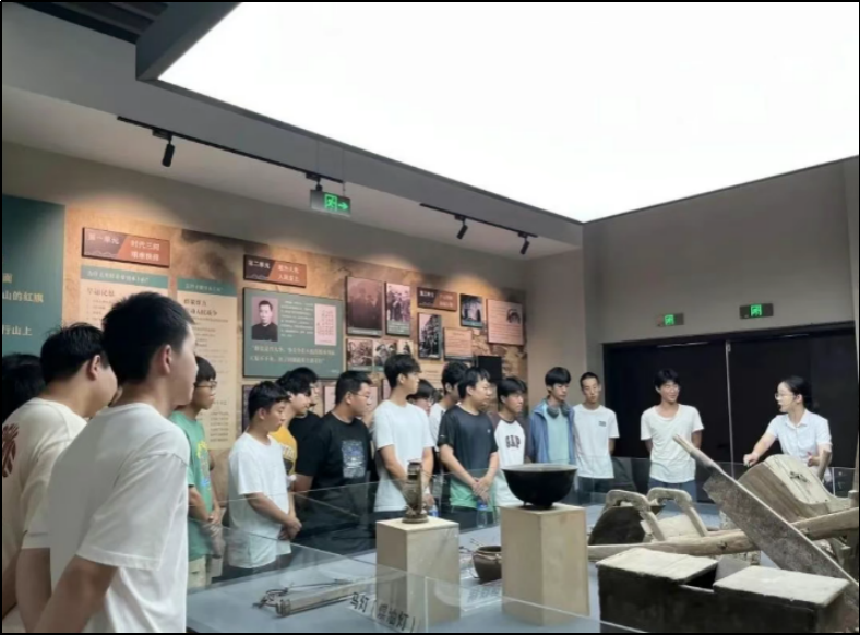 活动开始,首先,师生们跟随讲解员沉浸式参观,从泛黄的史料、珍贵的实物到逼真的场景复原,每一处展陈都成为鲜活的“历史课本”,从百团大战的激烈战斗场景,到绵右渠修建时的艰苦奋斗;从抗洪救灾中的众志成城,到太行天路建设带来的发展巨变,一桩桩、一件件,无不诉说着这片土地上的红色记忆与奋斗精神,让师生们深切体会到革命先辈的伟大与英勇无畏。